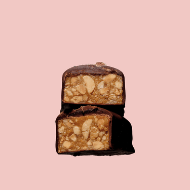 peanuts (36.3%), *cacao paste, *coconut blossom sugar, *cacao butter, *brown rice syrup, *coconut milk, *cacao nibs, wild crafted tremella mushroom powder (Tremella fuciformis) (1%), caramel extract (0.1%), Australian sea salt. [Cacao solids 25%]. *Organic. Contains: peanuts. May be present: sesame, pecan, almond, hazelnut, macadamia, cashew, pistachio.